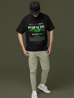 A sleek black oversized tee showcasing the iconic Porsche 911 RSR in vibrant green, paired with bold typography and a racing-inspired design. Perfect for drift enthusiasts and motorsport lovers, this tee brings track energy to your everyday wardrobe. Match it with neutral pants and sneakers for a balanced streetwear vibe.