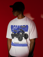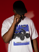 A bold oversized T-shirt showcasing the powerful Yamaha YFM 90R quad bike in striking blue. Perfect for off-road enthusiasts and streetwear lovers, this design blends rugged energy with sleek, motorsport-inspired style. Wear the adventure!