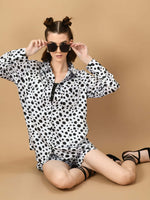 Product Description The Co-ord set consists of Top and shorts .Printed top has a shirt collar neck and sleeves . Experience the ultra-comfy and quirky prints by Offmint. Spec Fabric: Satin Bottom type: Shorts Number...