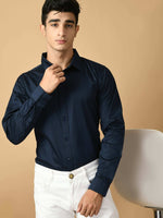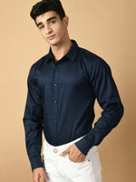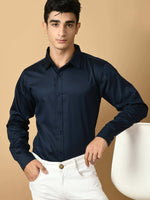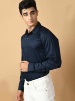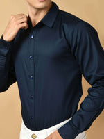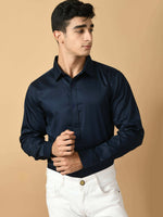 Blue Giza satin cotton premium design shirt clubwear design that takes you from broadroom to ballroom without any hassle Featuring a spread color and full sleeves this go for the party casual. Fused collar and cuffs, collar stand, and flat felled side seams provide structure and stability to all our shirts.