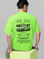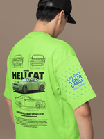 A bold neon green oversized tee featuring the legendary Dodge Challenger SRT Hellcat. The back design includes detailed car schematics, a side profile graphic, and powerful typography that captures the Hellcat's raw energy. Perfect for...