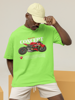 A vibrant lime green oversized tee featuring the sleek Ducati Streetfighter Concept in fiery red. Perfect for motorcycle enthusiasts and streetwear lovers alike, this bold design captures the adrenaline rush of speed and innovation. Pair it with neutral shorts and sneakers for a laid-back, high-energy look!