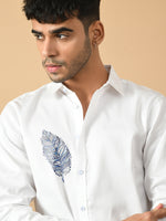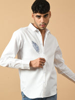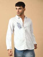 White Giza satin cotton premium design shirt clubwear design that takes you from broadroom to ballroom without any hassle Featuring a spread color and full sleeves this go for the party casual.