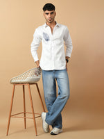 Product Description  White Giza satin cotton premium design shirt clubwear design that takes you from broadroom to ballroom without any hassle Featuring a spread color and full sleeves this go for the party casual. Fusedcollar...