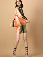 Multicolor lines printed co-ord set by offmint Multicolor women's co-ord set by offmint