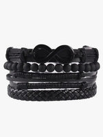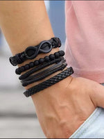 Men Obsidian Black Leather layered Bracelet By Offmint