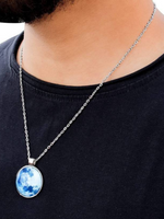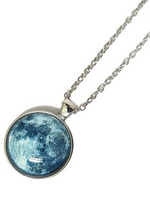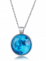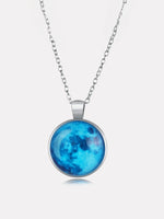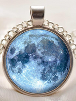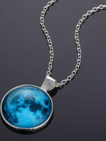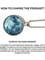 The round moonstone pendant glows in the dark. The Luna Pendant's unique design captures the essence of the night sky, making it a must-have for anyone who loves all things celestial. This moon pendant glows in the dark and makes you shine all night. Charge with natural light or flashlight before use.