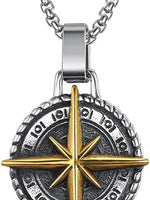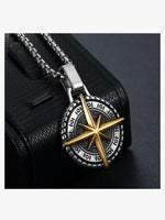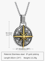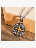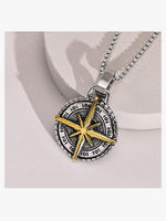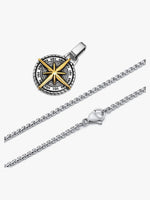 Silver Pleated Cross Compass Round Pendent With Chain Necklace For Men By Offmint