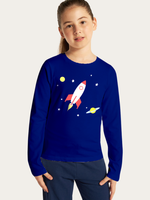 Welcome To Space Printed Royal Blue Full Sleeves KIds T-shirt By Offmint