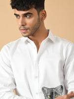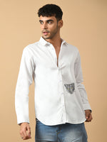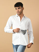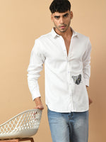 White Giza satin cotton premium design shirt clubwear design that takes you from broadroom to ballroom without any hassle Featuring a spread color and full sleeves this go for the party casual.Fused collar and cuffs, collar stand, and flat felled side seams provide structure and stability to all our shirts.