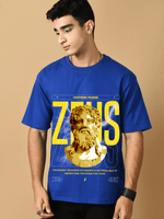 Zeus Printed Blue Oversized T-Shirt By Offmint