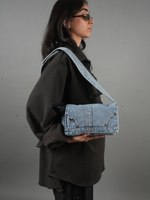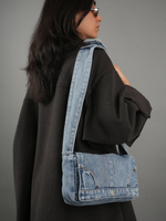 A structured take on denim aesthetics—this shoulder bag gives off effortless Y2K vibes with its panel stitching and washed-out blue. Your new everyday carry!