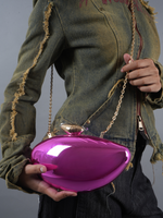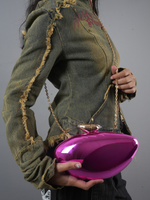 Futuristic, bold, and undeniably statement-making – the Nova Pulse bag is a vision of modern luxury. Its high-shine, mirror-like finish in electric magenta turns heads, reflecting the world around you while keeping your essentials secure. The sleek, pod-like silhouette is inspired by contemporary sculpture, and the gold hardware & chain add a touch of timeless elegance.