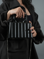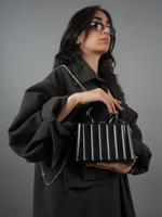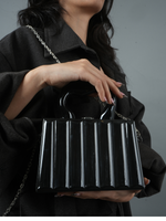 Sleek, structured, and effortlessly bold. This black handbag with ridged detailing is the perfect statement piece for any outfit.
