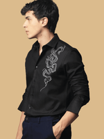 Black Giza satin cotton premium design shirt clubwear design that takes you from broadroom to ballroom without any hassle .featuring a spread color and full sleeves this go for the party casual.