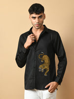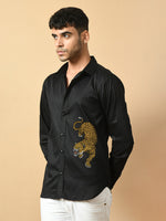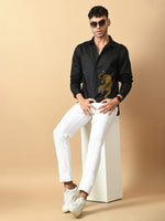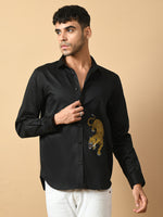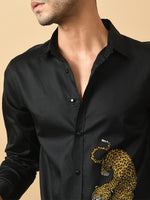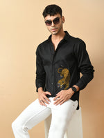 Black Giza satin cotton premium design shirt clubwear design that takes you from broadroom to ballroom without any hassle Featuring a spread color and full sleeves this go for the party casual. Fused collar and cuffs, collar stand, and flat felled side seams provide structure and stability to all our shirts.