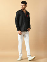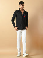 Black Giza satin cotton premium design shirt clubwear design that takes you from broadroom to ballroom without any hassle Featuring a spread color and full sleeves this go for the party casual. Fused collar and cuffs, collar stand, and flat felled side seams provide structure and stability to all our shirts.