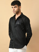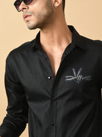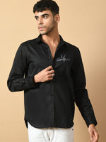 Black Giza satin cotton premium design shirt clubwear design that takes you from broadroom to ballroom without any hassle Featuring a spread color and full sleeves this go for the party casual. Fused collar and cuffs, collar stand, and flat felled side seams provide structure and stability to all our shirts.
