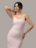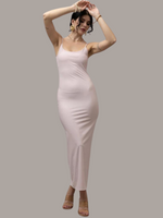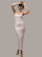 Turn heads in our Blush Muse Bodycon Maxi, a figure-hugging silhouette crafted in a soft blush pink hue. Designed with delicate spaghetti straps and a flattering scoop neckline, this dress effortlessly blends elegance with sultry charm. The lightweight stretch fabric drapes gracefully, accentuating every curve while keeping you comfortable. Perfect for evening soirées, date nights, or chic summer parties – just pair it with statement earrings and heels for a timeless look.