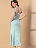 Elevate your elegance with the Mint Grace Panel Maxi. Crafted in a refreshing mint shade, this sleeveless dress features a flattering scoop neckline and sleek silhouette that flows effortlessly to the ankles. The subtle front panels and minimal flap detail at the waist add a touch of sophistication, making it perfect for daytime events or classy evenings. Style it with neutral heels and statement earrings for a polished, poised