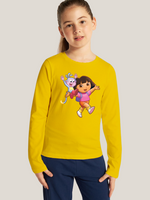 Dora & Boots Printed Yellow Full Sleeves Kids T-shirt By Offmint