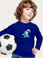 Astronaut On The Moon Printed Royal Blue Full Sleeves Kids T-shirt By Offmint Astronaut On The Moon Printed Royal Blue Full Sleeves Kids T-shirt By Offmint