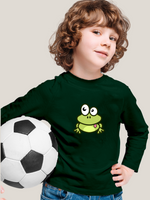 Frog Printed Bottle Green Full Sleeves Kids T-shirt By Offmint