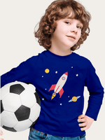 Welcome To Space Printed Royal Blue Full Sleeves Kids T-shirt By Offmint