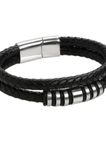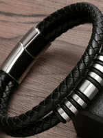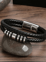 Multi-layer Genuine Leather Mixed the Braided Rope. Special Clasp, it is easy to Put On Without falling off. It is an excellent bracelet for men. The double-row braided leather bracelet has a fine texture to indicate the value of bracelet has a fine texture to indicate the value of the bracelet. Free of Lead and Nickel, Hypoallergenic, and Healthy. This men's bracelet with a magnetic clasp.