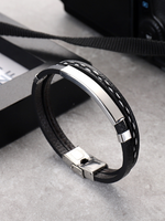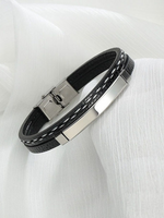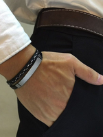 This Dual Layer Bracelet Is Made Of High-Quality Leather And Stainless Steel, There Are Clear Stripes On The Leather Surface, Durable and wear-resistant. Built With Skin-Friendly, Hypo-Allergenic, 316L Surgical Stainless Steel, Plated With 10 Micron Black Silver Plating In Glossy & Matte Finish.Suitable For Casual & Party Wear.