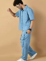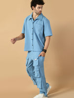 From our menswear collection, this valentino coord set in colour features a half-sleeved, classic collared shirt with plain buttons that elevate the simplicity of a timeless shirt. Along with a pair of valentino cargo pants, It is Durable, comfortable, innovative and functional. so you don’t lose out on comfort in the name of style.