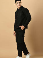 Versatile casual elegance is perfectly embodied in Offmint's Co-Ord Black Overshirt and Button Set. The overshirt, with its classic black design, is sophisticated and versatile. Its polished look effortlessly goes from a casual to an evening look, making it a wardrobe must. This ensemble offers the ideal balance of style and adaptability, adding a touch of refinement to any ensemble when paired with its matching button set.