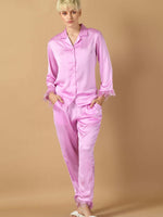 The Co-Ord set consists of Top and Trouser with feather lace. Top has a shirt collar neck and sleeves .