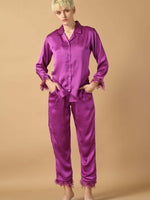 The Co-ord set consists of Top and Trouser with feather lace. Top has a shirt collar neck and sleeves .