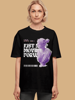 Just Keep Moving Forward Printed Black Oversized T-Shirt By Offmint