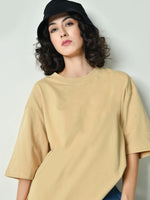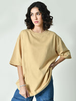 A beige oversized t-shirt is a trendy and comfortable staple known for its relaxed fit and casual style. Key features typically include: