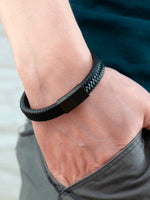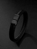 Make a fashion statement with the Statement Round Leather Bracelet. Its perfect blend of black leather, along with its round shape, makes it a must-have accessory for your wardrobe. Whether you're going for a formal, informal, or festive look, this bracelet is the ideal finishing touch that adds a touch of elegance and uniqueness to your ensemble. Elevate your style and leave a lasting impression with this striking piece of wristwear.