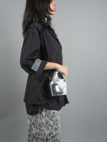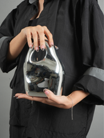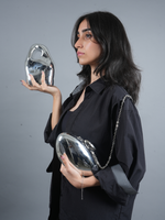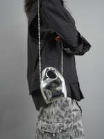 A bold, sculptural statement piece with a high-shine metallic finish and sleek chain strap. Streetwear meets futurism—turn heads effortlessly!