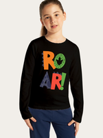 Roar Printed Black Full Sleeves Kids T-shirt By Offmint