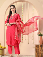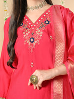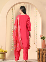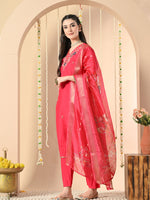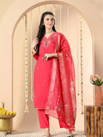 Add a touch of elegance and grace to your festive wardrobe with the Rosé Charm Kurta Set. Designed in a refreshing rosy pink hue, this kurta is highlighted with delicate floral embroidery and mirror work around the neckline, making it a standout piece for celebrations.