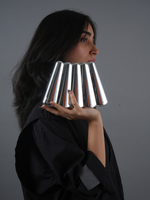 A futuristic statement piece with a sleek, sculpted design and high-gloss chrome finish. Minimal, bold, and undeniably iconic.
