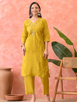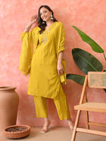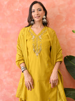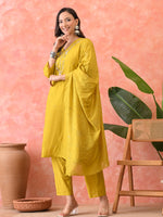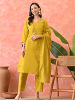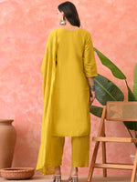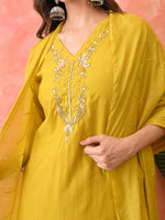 Brighten up any occasion with our Sunlit Mustard Embroidered Kurta Set. This vibrant three-piece ensemble features a straight-fit kurta in a rich mustard yellow shade, embellished with delicate embroidery and subtle sequins along the neckline for an elegant touch. The matching straight pants provide comfort and sophistication, while the coordinating dupatta with intricate embroidered motifs enhances the overall charm of the outfit.